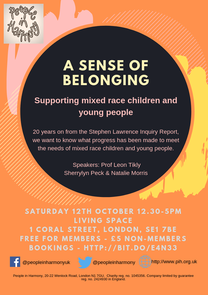 Bring your views and experiences and contribute to the discussions around changes needed to the pubic services provided to mixed race children, young people and families – services that need to reflect them and their needs and acknowledge their right to self-identify.