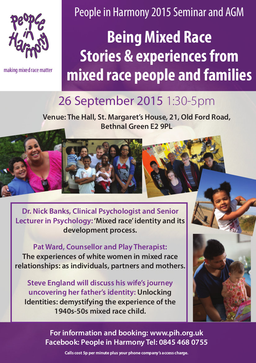 Book your tickets now for this annual event, listen to speakers with professional and personal experience of mixed race and have an opportunity to share your stories and experiences